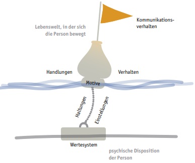 Ihr Verhalten wird durch bewusste und unbewusste Motive gesteuert, im Bild symbolisiert durch einen nur teilweise sichtbaren Schwimmer, der die Boje aufrecht und beweglich hält.